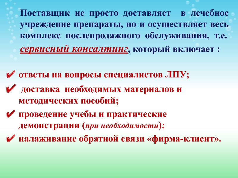 Слайд 46Поставщик не просто доставляет в лечебное учреждение препараты, но и