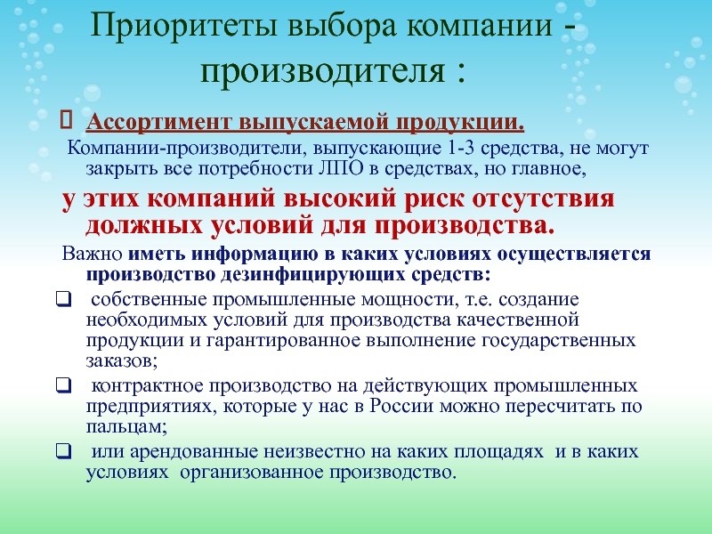 Важно иметь информацию в каких условиях осуществляется производство дезинфицирующих средств: