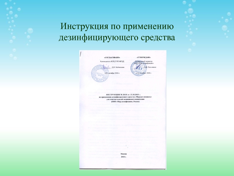 Слайд 56Инструкция по применению дезинфицирующего средства