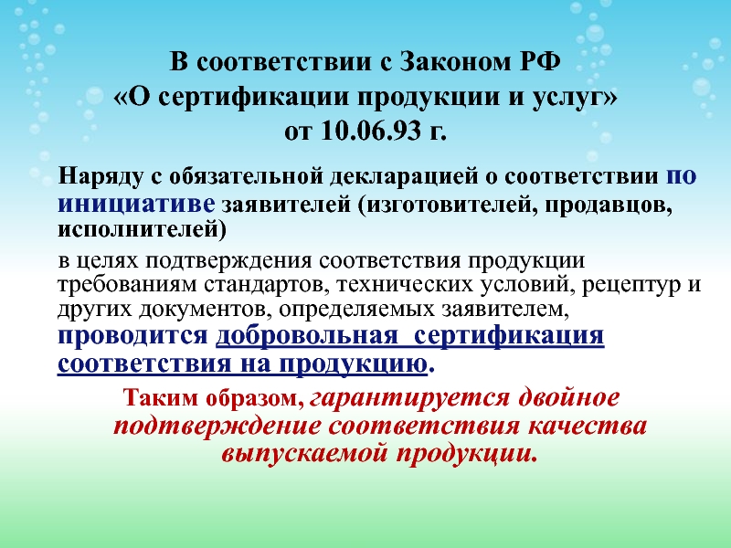 в целях подтверждения соответствия продукции требованиям стандартов, технических условий, рецептур и других документов, определяемых заявителем, проводится добровольная сертификация соответствия на продукцию.
