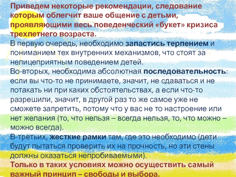 Слайд 16Приведем некоторые рекомендации, следование которым облегчит ваше общение с детьми,