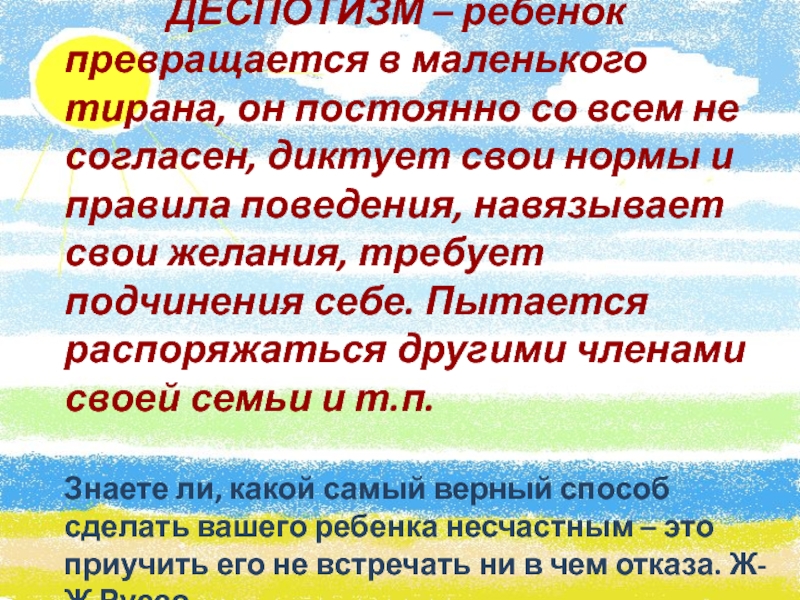 Слайд 14 ДЕСПОТИЗМ – ребенок превращается в маленького