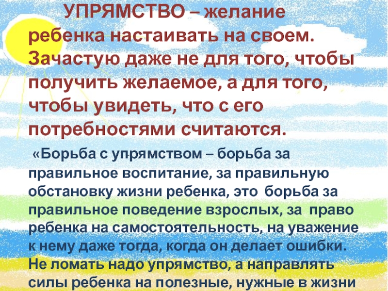 УПРЯМСТВО – желание ребенка настаивать на своем. Зачастую даже не