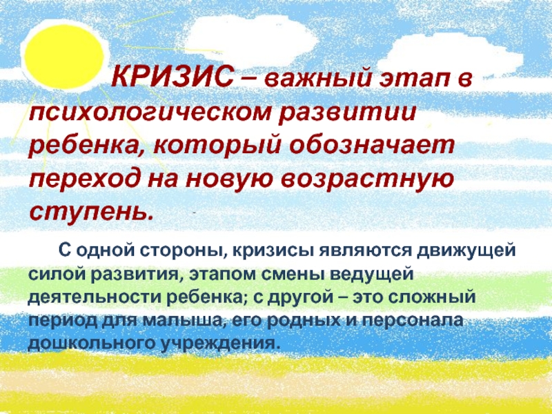этап в психологическом развитии ребенка, который обозначает переход на новую возрастную ступень.