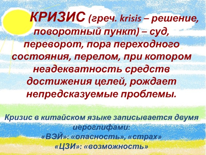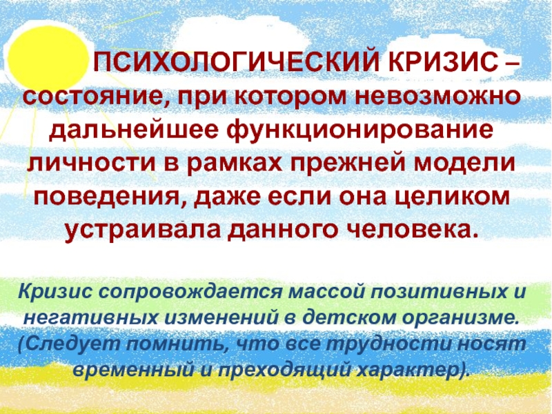 Слайд 3 ПСИХОЛОГИЧЕСКИЙ КРИЗИС – состояние,