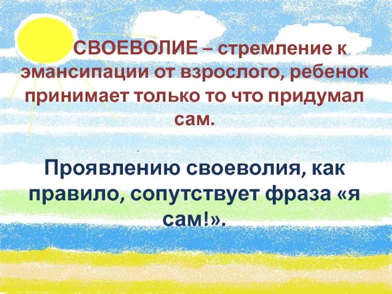 Слайд 10 СВОЕВОЛИЕ – стремление к эмансипации от