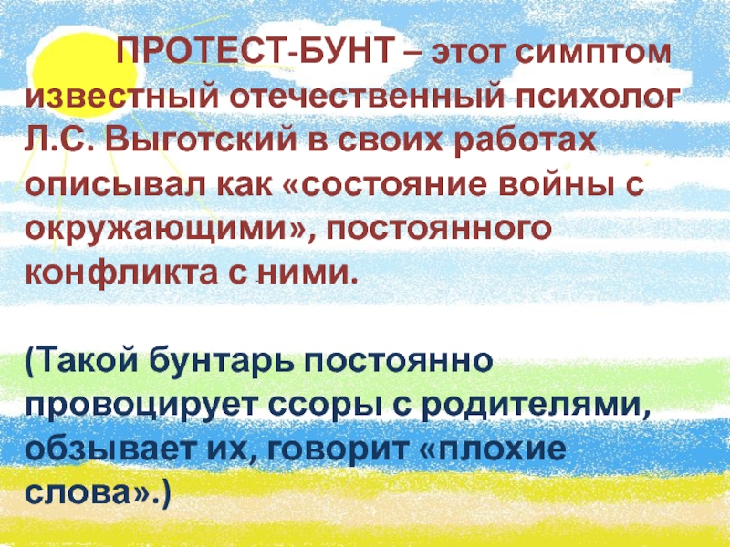 Слайд 13 ПРОТЕСТ-БУНТ – этот симптом