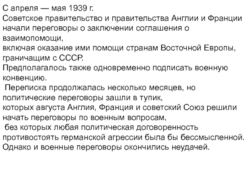 англо-франко-советские переговоры и обеспечить нейтралитет СССР, прежде чем нападать на Польшу.
