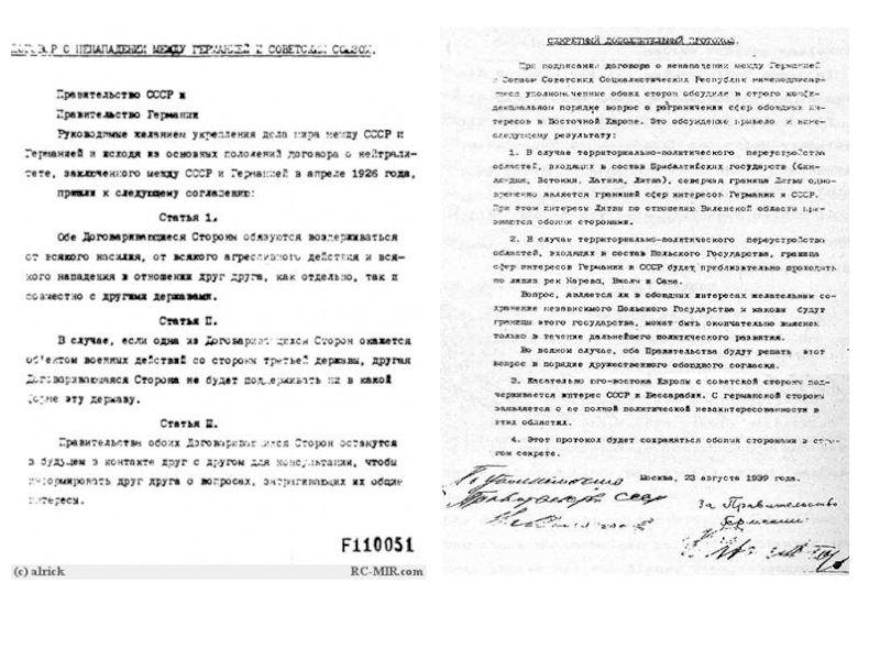 Советско-германский пакт о ненападении был подписан 23 августа 1939 г. Договор о ненападении предусматривал нейтралитет СССР и Германии в случае военных конфликтов одной из договаривающихся сторон с третьими странами.