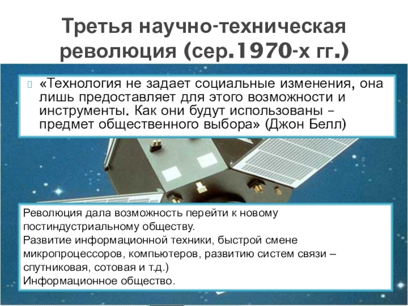 Революция дала возможность перейти к новому постиндустриальному обществу.