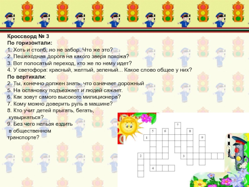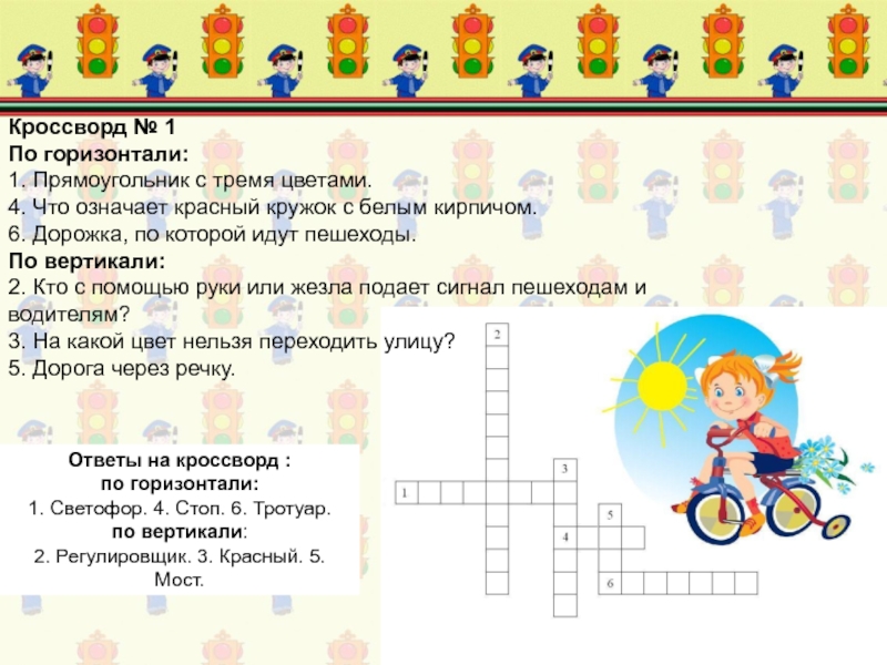 1. Светофор. 4. Стоп. 6. Тротуар.