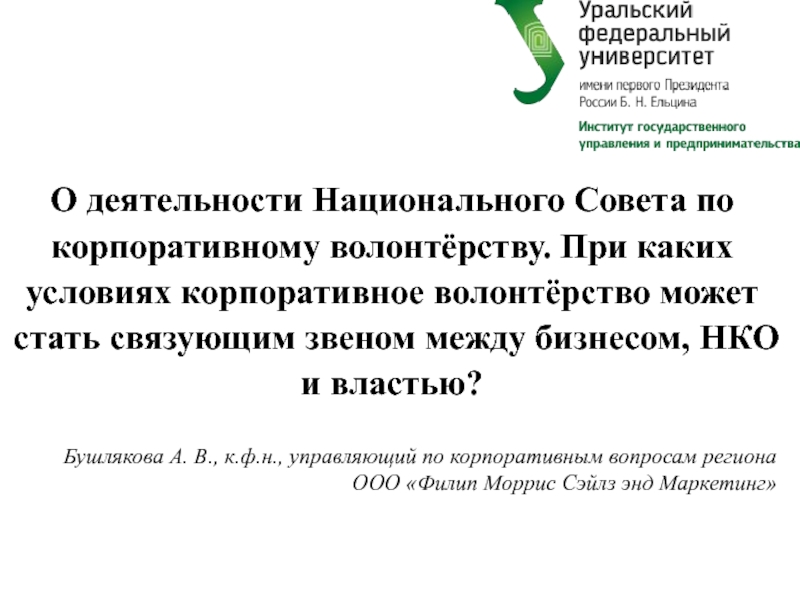 университета Партнеры мероприятия: Информационно-аналитический департамент Администрации города Екатеринбурга, Представительство Национального Совета по корпоративному волонтерству на Урале.