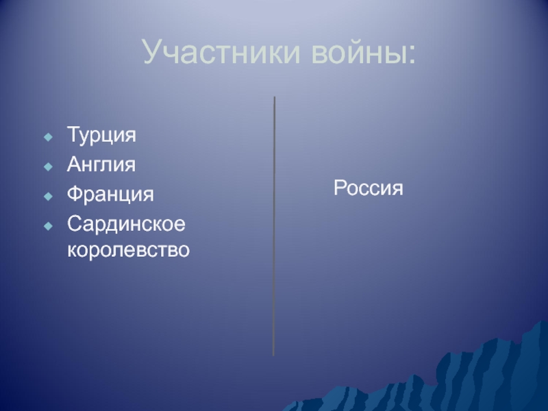 Участники войны:ТурцияАнглияФранцияСардинское королевствоРоссия