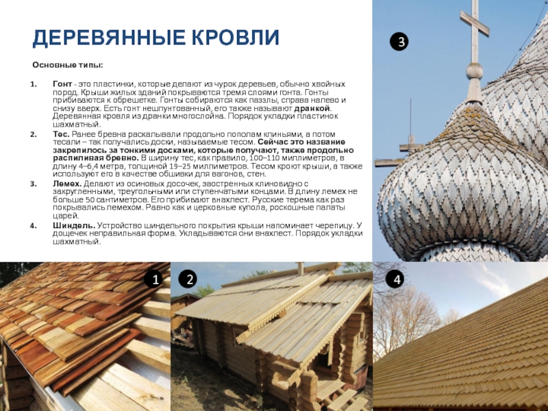 деревьев, обычно хвойных пород. Крыши жилых зданий покрываются тремя слоями