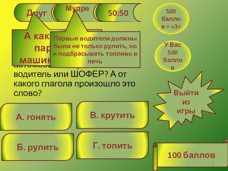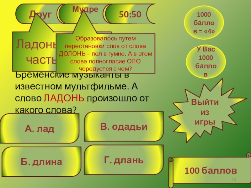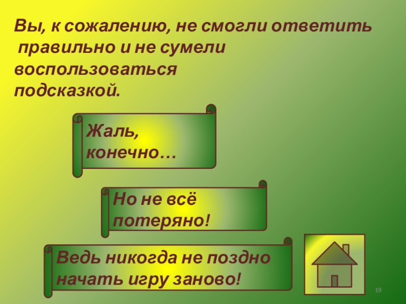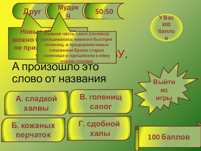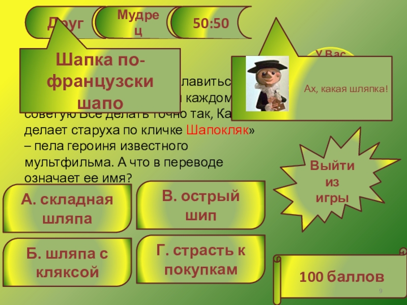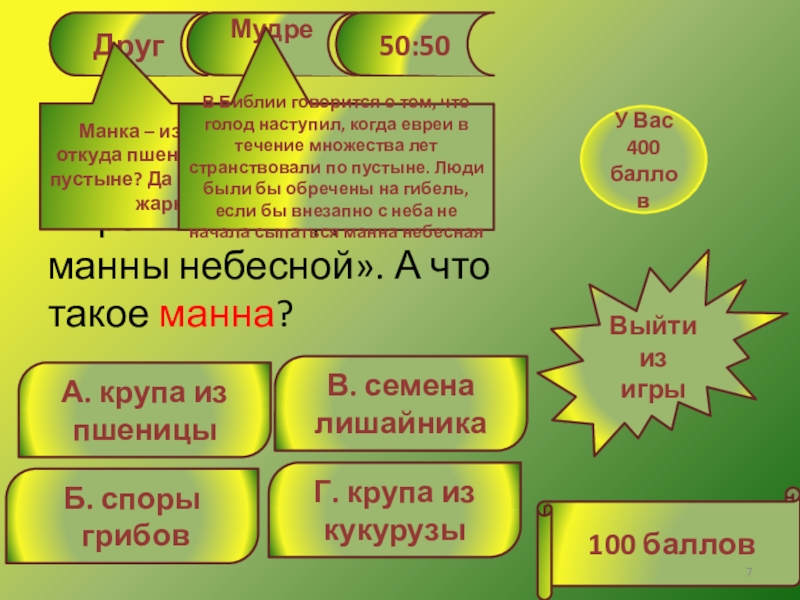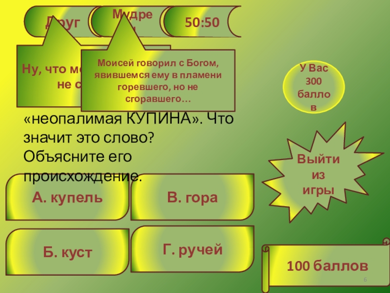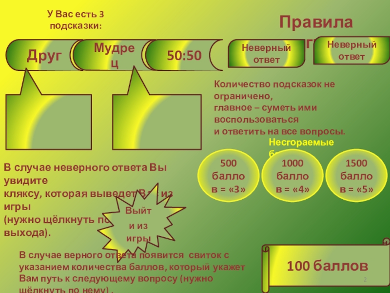 В случае верного ответа появится свиток с указанием количества баллов, который укажет Вам путь к следующему вопросу (нужно щёлкнуть по нему) .