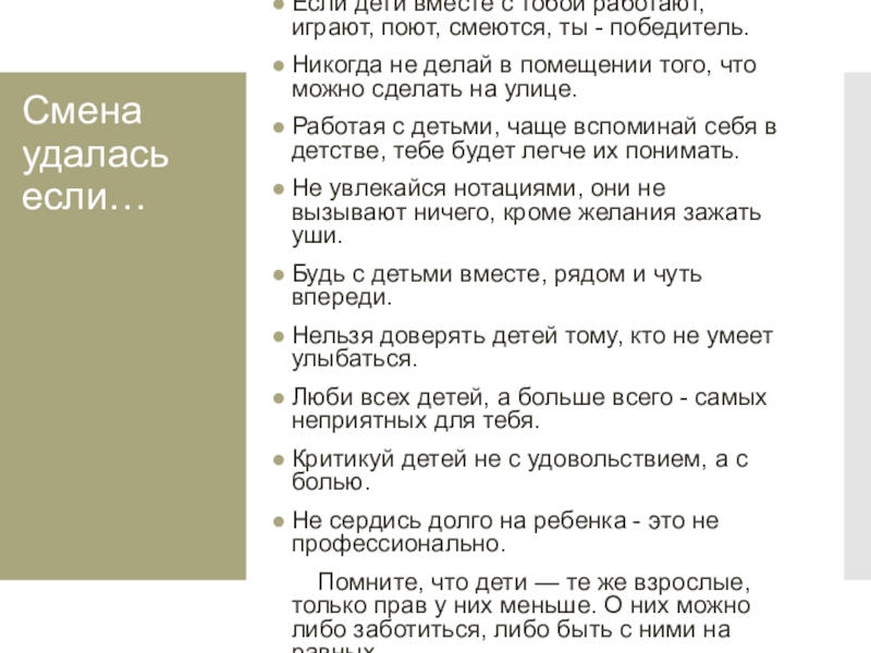 Слайд 9Смена удалась если…