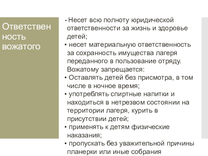 Слайд 4Ответственность вожатого