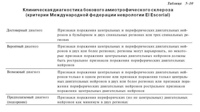 Слайд 29Диагностические критерии БАС всемирной организации неврологов (1998):