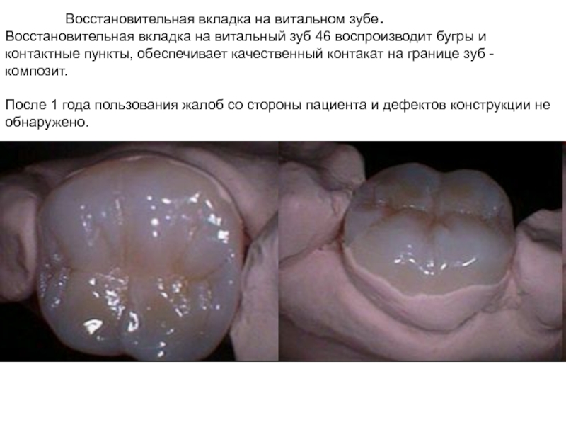 обеспечить хорошую точность припасовки, отсутствие стрессовых нагрузок, легкость и быстроту дальнейшей обработки.Ввиду отсутствия этапа отливки зуб может быть восстановлен под коронку за 60 - 80 минут, включая работу в лаборатории и фиксацию вкладки.