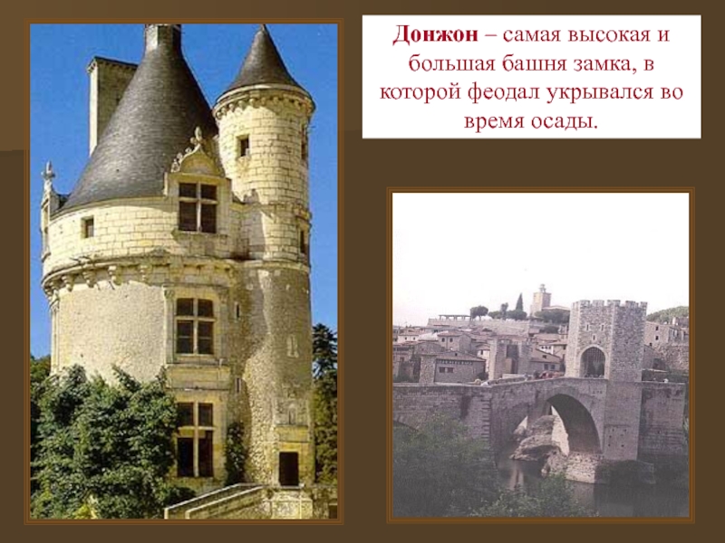Слайд 4Донжон – самая высокая и большая башня замка, в которой