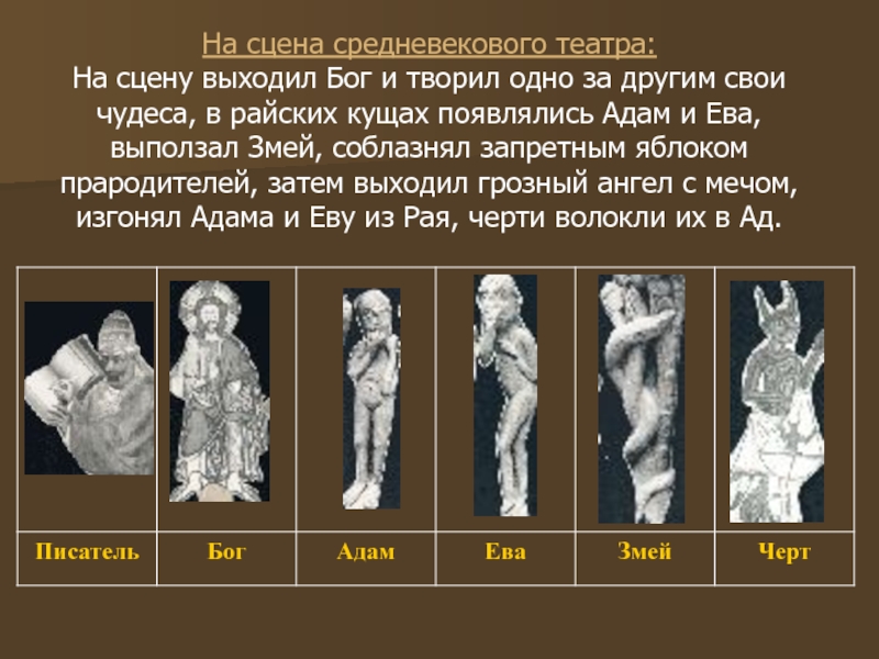 Слайд 14На сцена средневекового театра: На сцену выходил Бог и творил одно