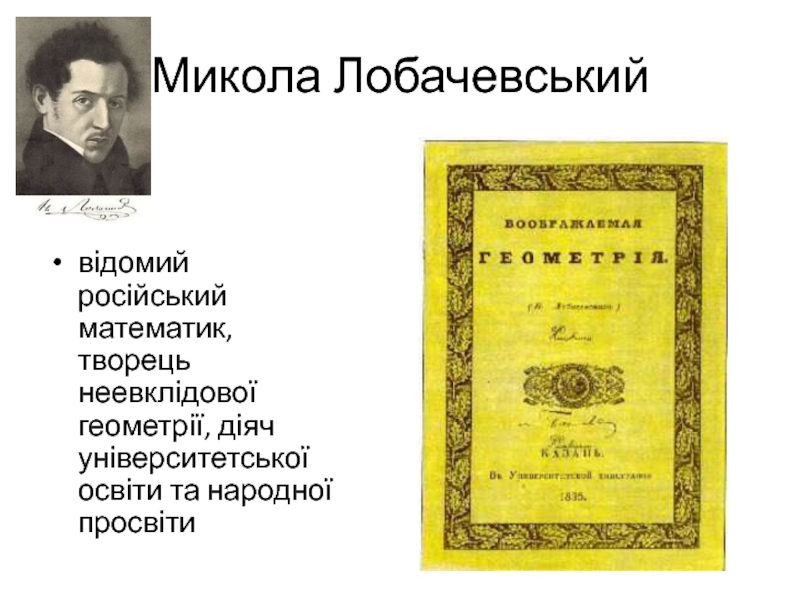 Слайд 16Микола Лобачевський