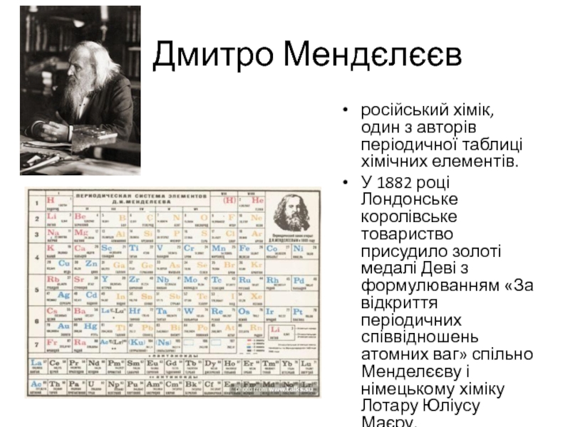 Слайд 19Дмитро Мендєлєєв