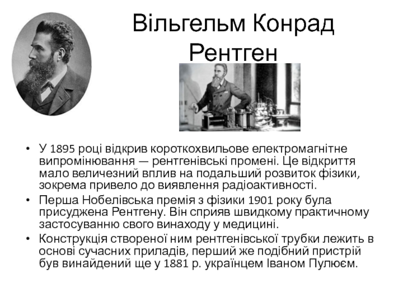 Слайд 27Вільгельм Конрад Рентген