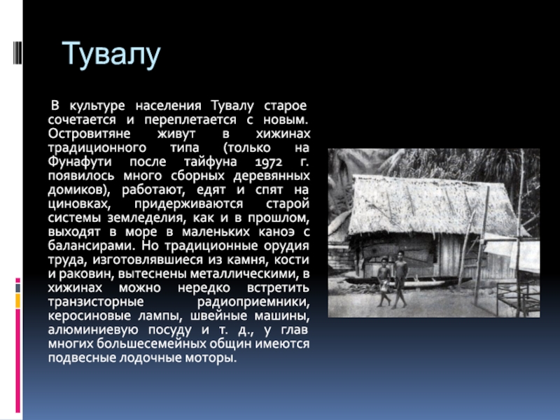 Островитяне живут в хижинах традиционного типа (только на Фунафути после
