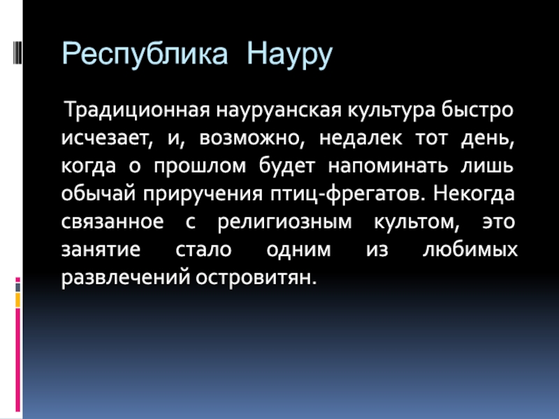 Традиционная науруанская культура быстро исчезает, и, возможно, недалек тот