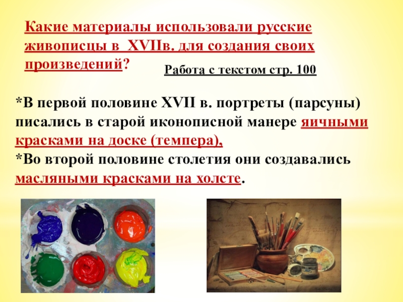 Слайд 36Какие материалы использовали русские живописцы в XVIIв. для создания своих