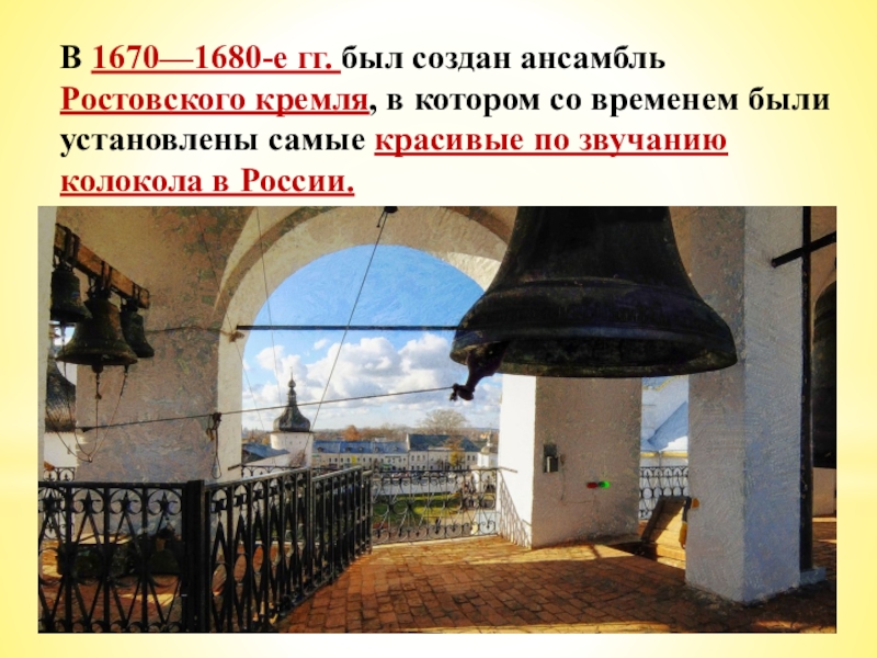 Слайд 29В 1670—1680-е гг. был создан ансамбль Ростовского кремля, в котором