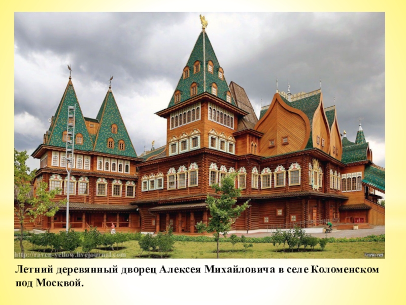 Слайд 26Летний деревянный дворец Алексея Михайловича в селе Коломенском под Москвой.