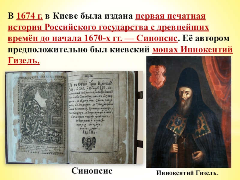 — Синопсис. Её автором предположительно был киевский монах Иннокентий Гизелъ.