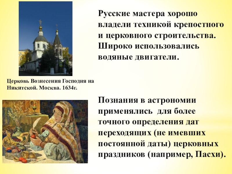 Слайд 21Русские мастера хорошо владели техникой крепостного и церковного строительства. Широко