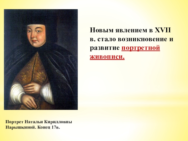 Слайд 35Новым явлением в XVII в. стало возникновение и развитие портретной