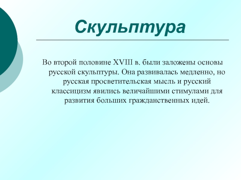 заложены основы русской скульптуры. Она развивалась медленно, но русская просветительская
