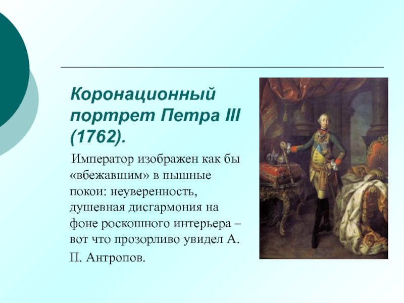 Слайд 42 Коронационный портрет Петра III (1762).
