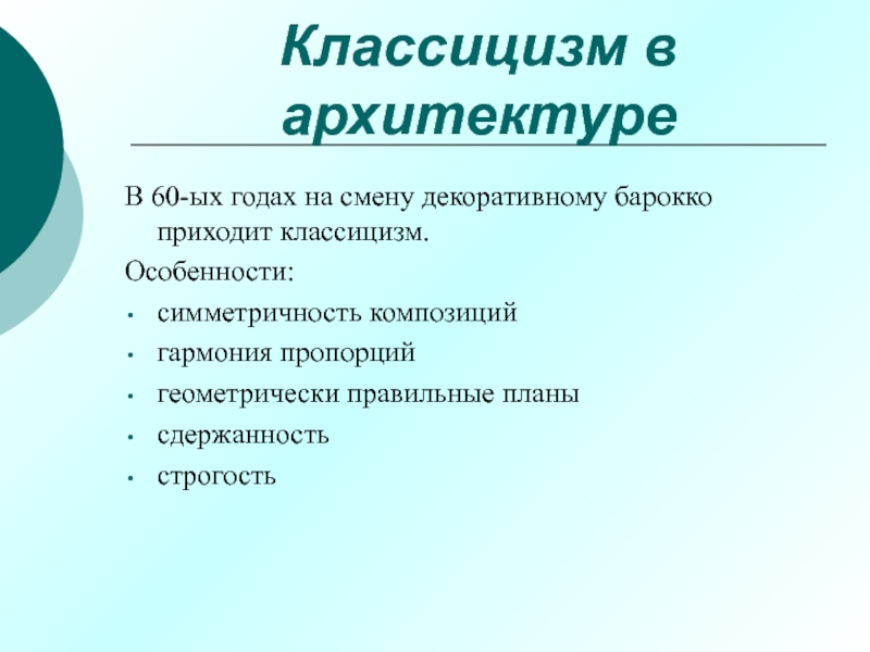 В 60-ых годах на смену декоративному барокко приходит
