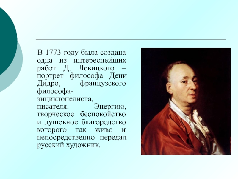 работ Д. Левицкого – портрет философа Дени Дидро, французского философа-энциклопедиста,
