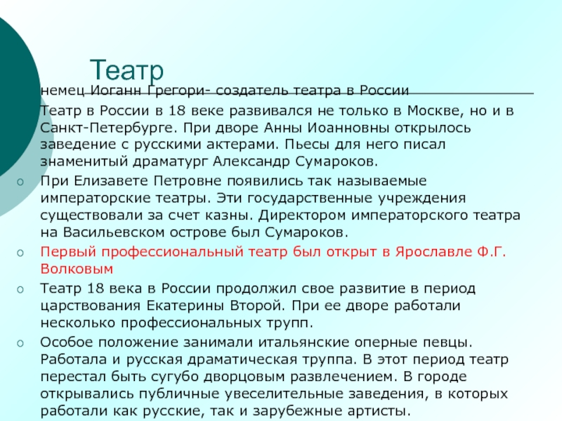 Театр 18 века в России знает имена