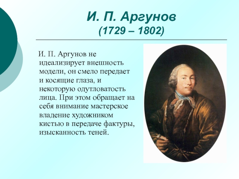 Крупнейший московский портретист, работавший в период Русского Просвещения.