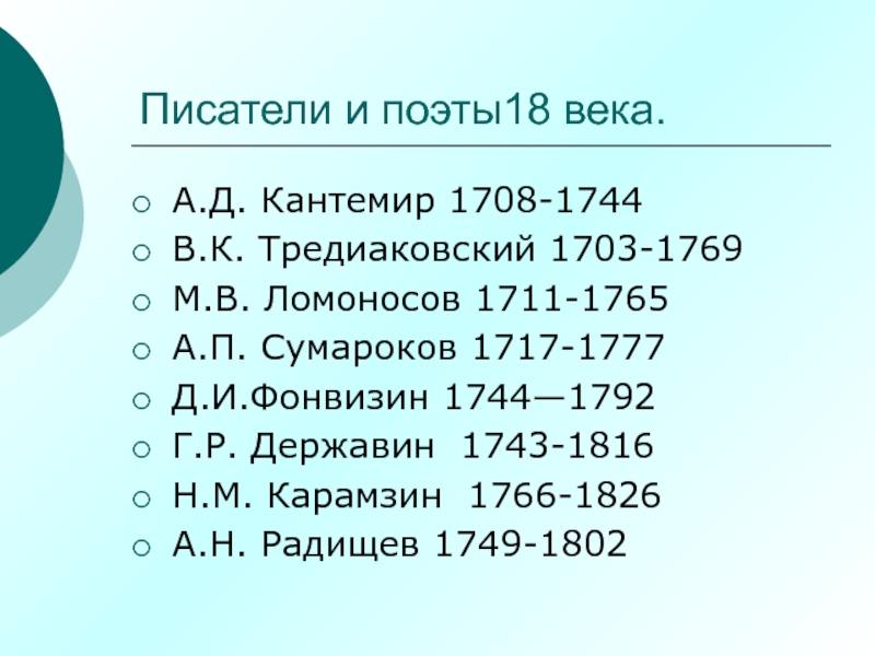 Слайд 51Писатели и поэты18 века.