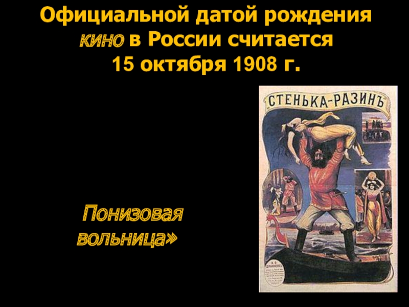 Слайд 62Официальной датой рождения кино в России считается