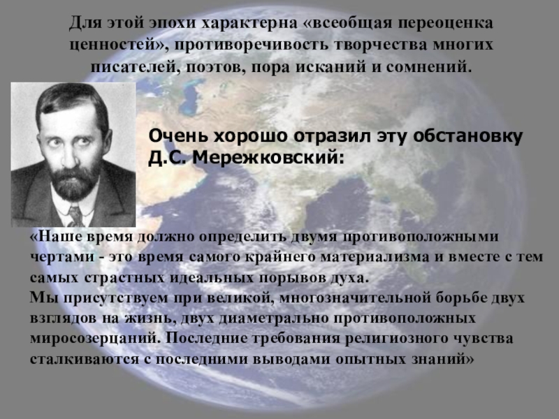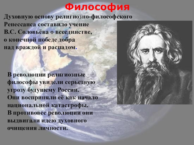 пробуждения в России самостоятельной философской мысли, расцвет поэзии и обострение эстетической чувствительности, религиозного беспокойства и искания, интереса к мистике и оккультизму»