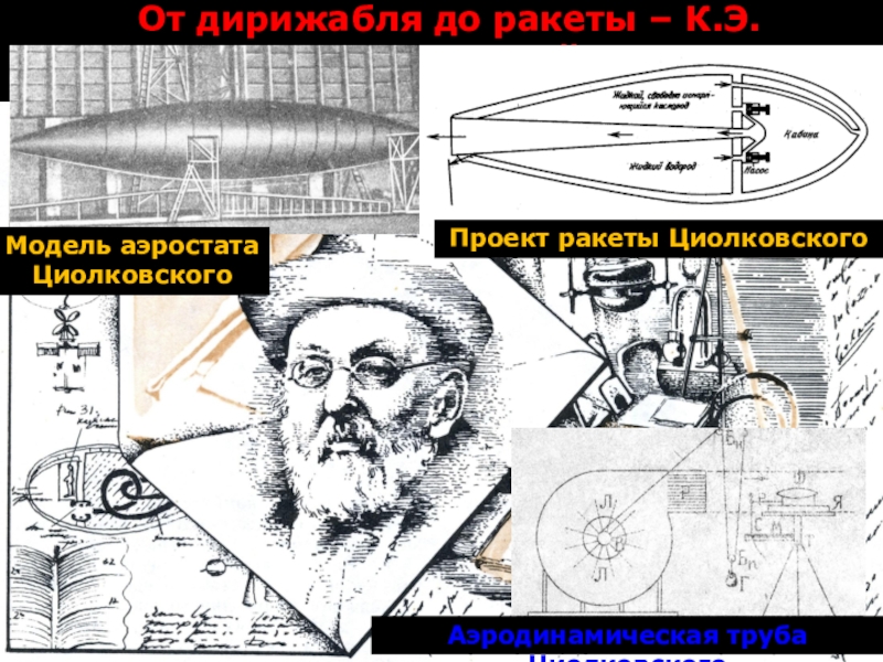 Слайд 13От дирижабля до ракеты – К.Э. Циолковский