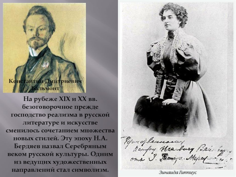 стилей. Эту эпоху Н.А. Бердяев назвал Серебряным веком русской культуры. Одним из ведущих художественных направлений стал символизм.