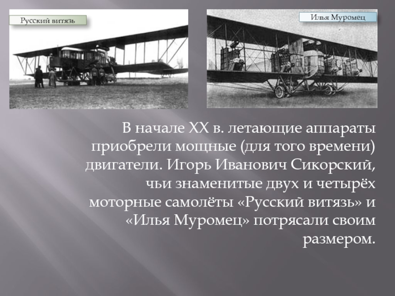Слайд 3В начале XX в. летающие аппараты приобрели мощные (для того