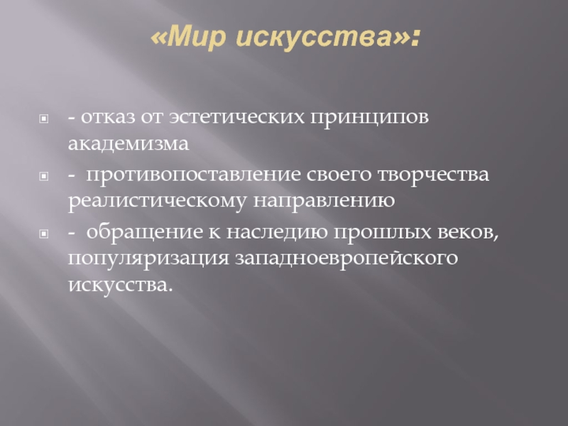 Слайд 19«Мир искусства»: