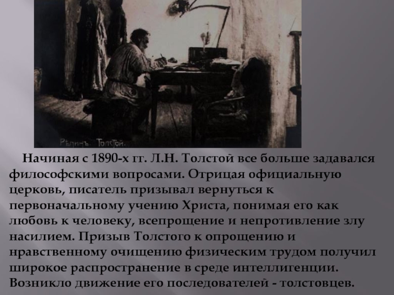 Слайд 11 Начиная с 1890-х гг. Л.Н. Толстой все больше